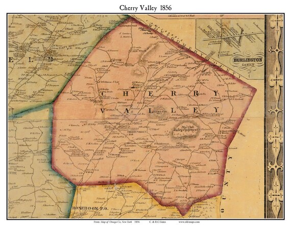 Cherry Valley 1856 Old Town Map With Homeowner Names New York