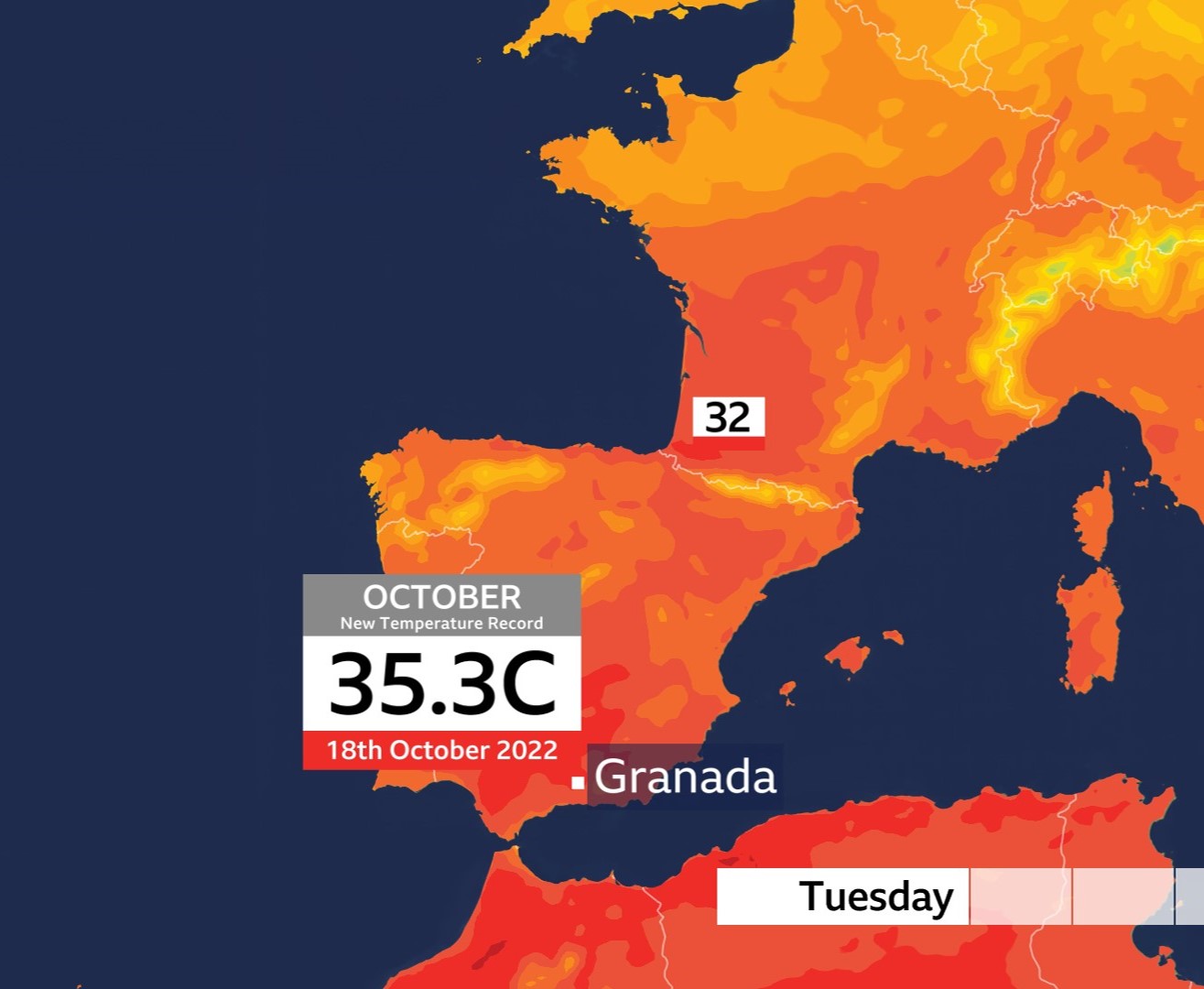 BBC Weather on X: “A day of record heat for parts of Spain